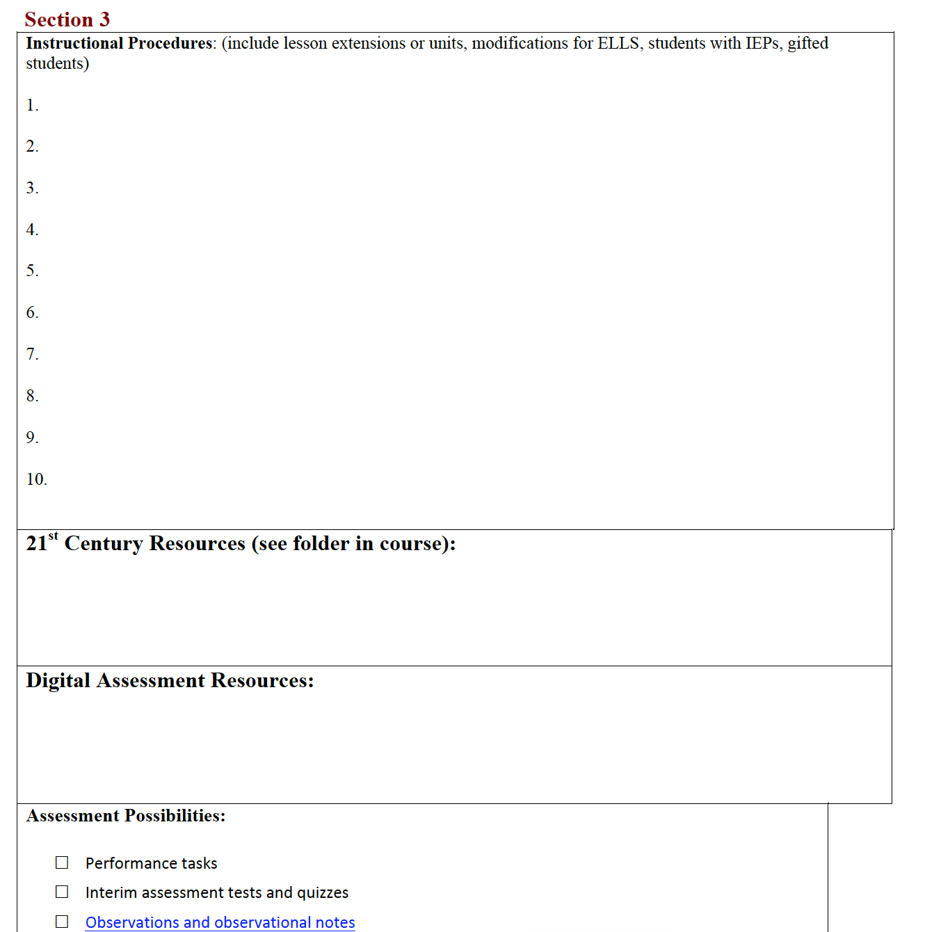 - Provide as much detail as possible and as applicable in the Instructional Procedures section.